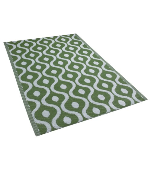 Ce tapis d'extérieur apportera de la modernité à tout espace plein air. Ce tapis rectangulaire est fabriqué en plastique avec des motifs modernes verts et blancs, créant ainsi un ensemble harmonieux qui mettra en valeur votre sol. Il est résistant, facile à entretenir et trouvera sa place particulièrement devant une porte d'entrée.