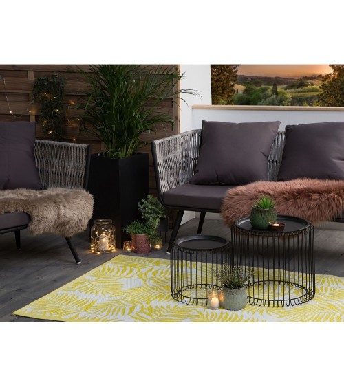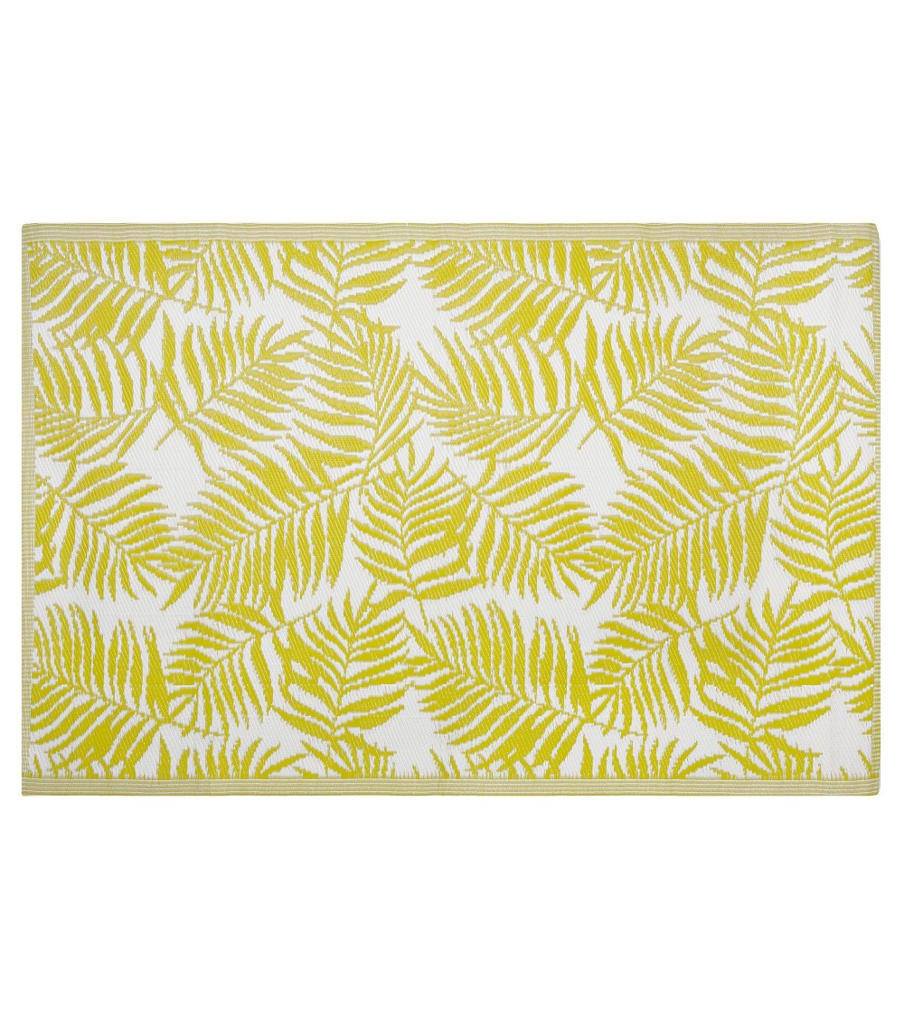 Parfait pour rajouter du style à votre espace extérieur, ce tapis résistant peut être utilisé sans aucun probème sur votre terrasse ou jardin. Avec son motif de feuilles de palmier tropical tendance aux couleurs vives, il saccordera parfaitement à tous les espaces au style ?nature? et apportera une vague de fraîcheur tropicale à votre espace extérieur. Grâce à ses matériaux imperméables, il conserve sa qualité et peut être utilisé toute l'année.