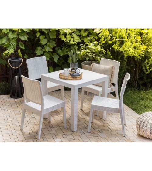 Table de jardin 4 personnes en matière synthétique blanc