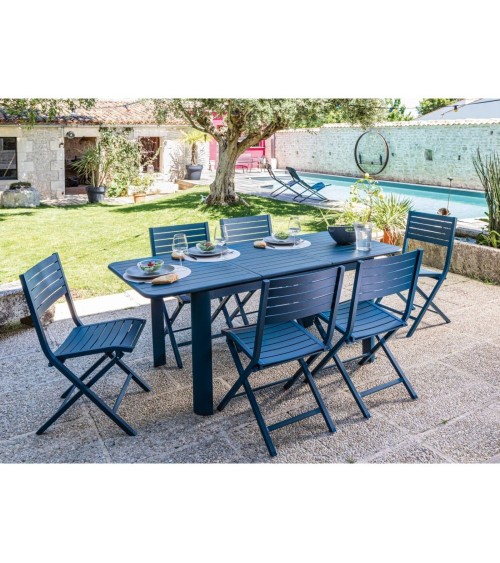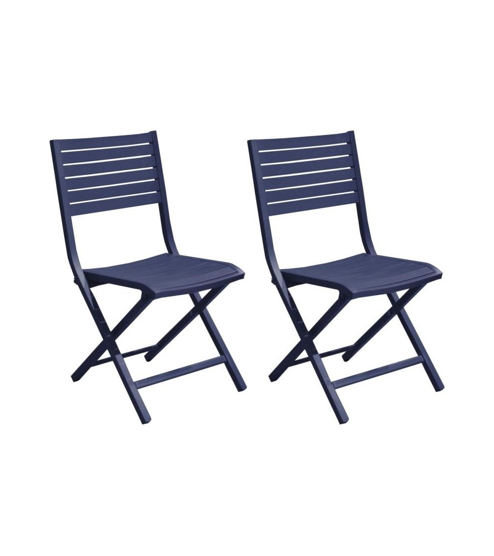 Aspect : Coloris : BleuMatériau principal : Aluminium epoxyDimensions : Hauteur (en cm) : 87,00Longueur (en cm) : 53Profondeur (en cm) : 46,00Autres caractéristiques : Composition : Lot de 2 chaises identiquesEntretien : Ne jamais utiliser de produits abrasifs : poudre - laine d'acier - solvantsInformations complémentaires : Pliantes A lattes Livré monté : OuiPoids (en kg) : 5,00 Chaises pliantes en aluminium Lucca (Lot de 2)