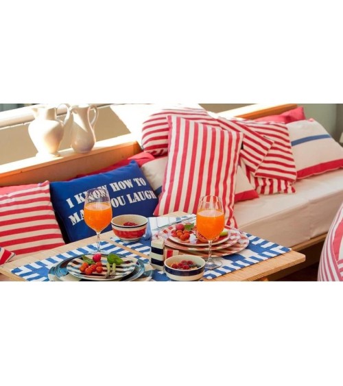 Coussin 100% coton 50 cm faro rouge - blanc cassé et bleu