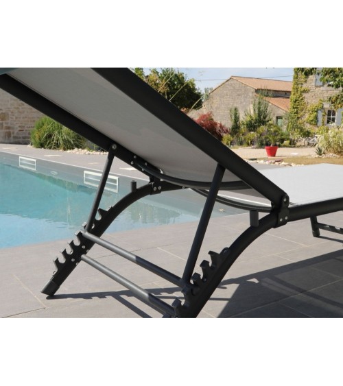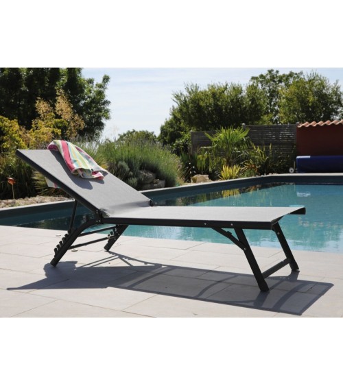 Aspect : Matériau principal : Aluminium epoxy (chassis)Matériaux secondaires : Toile polyester enduite perforéeAutres dimensions : Hauteur d'assise : 35 cmDimensions : Hauteur (en cm) : 90Longueur (en cm) : 175Profondeur (en cm) : 52Autres caractéristiques : Composition : Vendu à l'unitéConseils d'entretien : Ne jamais utiliser de produits abrasifs : poudre - laine d'acier - solvantsInformations complémentaires : Pieds et dossier pliant Dossier réglable en 7 positions Empilable Poids (en kg) : 5Poids maximum : 120 kg Bain de soleil aluminium Jersey