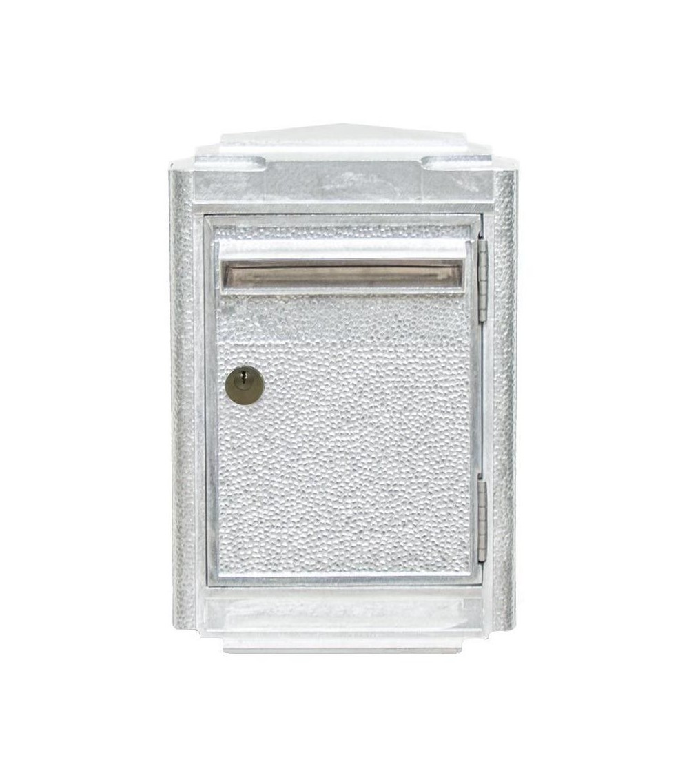 Aspect : Finitions : Peinture primaire d'accroche Laque polyuréthane finition brillante garantie 5 ans Matériau principal : AluminiumMatériaux secondaires : Inox (serrure) Acier zingué (grille de fond) Dimensions : Hauteur (en cm) : 42,30Longueur (en cm) : 27,80Profondeur (en cm) : 17Autres caractéristiques : Fabrication : FrançaiseFenêtre d'introduction : Non homologuée Fenêtre d'introduction largeur 171mm x hauteur 25mm (ne convient pas aux courriers A4) Informations complémentaires : Boite aux lettres officielle des postes française Pré-perçage pour fixation murale épaisseur 6-7 mm (livrée avec 3 chevilles M10 + 3 vis M10 type tire fond + 3 rondelles) Porte aluminium épaisseur 5mm Volet articulé en Inox 10/10ème A2 304 Articulation porte par 2 charnières INOX 10/10ème A2 304 Grille de fond anti humidité anti insectes et anticorrosion Livré monté : OuiPoids (en kg) : 7Serrure : Homologuée Inoxydable Pass PTT 2 clés Volume utile coffre : Homologué 11 dm3 Boîte aux lettres en aluminium petit modèle 1945