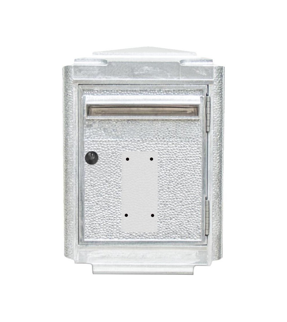 Aspect : Finitions : Peinture primaire d'accroche Laque polyuréthane finition brillante garantie 5 ans Matériau principal : AluminiumMatériaux secondaires : Inox (serrure) Acier zingué (grille de fond) Dimensions : Hauteur (en cm) : 50,80Longueur (en cm) : 35Profondeur (en cm) : 23,20Autres caractéristiques : Fabrication : FrançaiseFenêtre d'introduction : Homologuée Fenêtre d'introduction largeur 235mm x hauteur 30mm Informations complémentaires : Modèle emblématique des postes françaises implanté dans toutes les rues sur pied ou fixé aux murs Pré-perçage pour fixation murale épaisseur 6-7 mm (livrée avec 3 chevilles M10 + 3 vis M10 type tire fond + 3 rondelles) Porte aluminium épaisseur 5mm Volet articulé en Inox 10/10ème A2 304 Articulation porte par 2 charnières INOX 10/10ème A2 304 Grille de fond anti humidité anti insectes et anticorrosion Avec porte étiquette pour nom - adresse - n° de rue... Livré monté : OuiPoids (en kg) : 10,50Serrure : Homologuée Inoxydable Pass PTT 2 clés Volume utile coffre : Homologué 23 dm3 Boîte aux lettres en aluminium grand modèle 1950