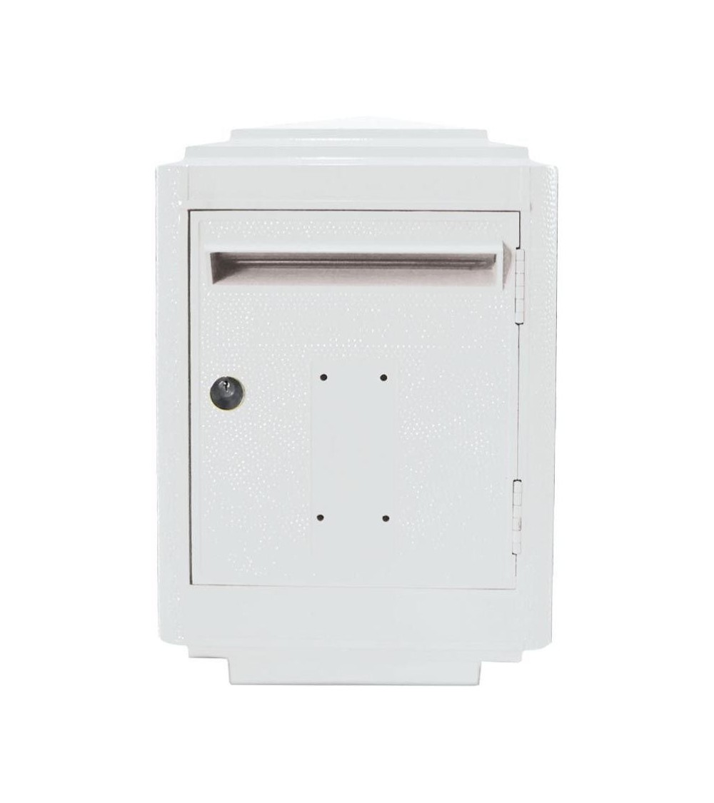 Aspect : Finitions : Peinture primaire d'accroche Laque polyuréthane finition brillante garantie 5 ans Matériau principal : AluminiumMatériaux secondaires : Inox (serrure) Acier zingué (grille de fond) Dimensions : Hauteur (en cm) : 50,80Longueur (en cm) : 35Profondeur (en cm) : 23,20Autres caractéristiques : Fabrication : FrançaiseFenêtre d'introduction : Homologuée Fenêtre d'introduction largeur 235mm x hauteur 30mm Informations complémentaires : Modèle emblématique des postes françaises implanté dans toutes les rues sur pied ou fixé aux murs Pré-perçage pour fixation murale épaisseur 6-7 mm (livrée avec 3 chevilles M10 + 3 vis M10 type tire fond + 3 rondelles) Porte aluminium épaisseur 5mm Volet articulé en Inox 10/10ème A2 304 Articulation porte par 2 charnières INOX 10/10ème A2 304 Grille de fond anti humidité anti insectes et anticorrosion Avec porte étiquette pour nom - adresse - n° de rue... Livré monté : OuiPoids (en kg) : 10,50Serrure : Homologuée Inoxydable Pass PTT 2 clés Volume utile coffre : Homologué 23 dm3 Boîte aux lettres en aluminium grand modèle 1950