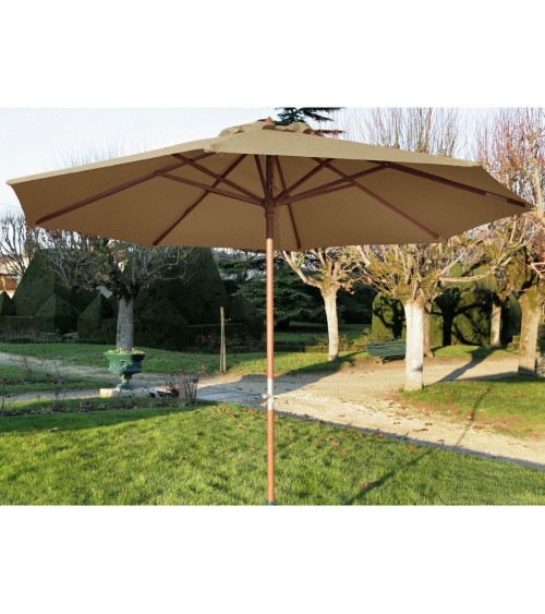 Aspect : Matériau principal : Toile polyester 270 grMatériaux secondaires : Eucalyptus Deglupta blume FSCDimensions : Diamètre (en cm) : 350,00Hauteur (en cm) : 245,00Autres caractéristiques : Informations complémentaires : 8 baleines de 17x22 mm Toile traitée téflon avec cheminée Ouverture par manivelle Pied de parasol non fourni Mât droit en 2 parties de 48 mm Poids (en kg) : 10,00 Toile polyester 270 gr/m², déperlantMât Eucalyptus 48 mm + 8 baleinesOuverture facile par manivelle Pied non fourniDiamètre 3,5 m , Hauteur 2,45 m
