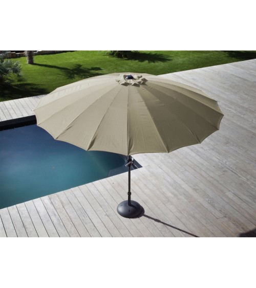 Aspect : Coloris : Argile (toile) Royal grey (mât) Matériau principal : Toile polyester 180 gr déperlanteMatériaux secondaires : Fibre de verre (baleines) Aluminium 38 mm (mât) Dimensions : Diamètre (en cm) : 300Hauteur (en cm) : 260,00Autres caractéristiques : Informations complémentaires : Ouverture par manivelle Inclinable Sous housse cristal avec zip 18 baleines Pied de parasol non fourni Poids (en kg) : 8 Toile polyester 180 gr/m², déperlantMât aluminium 38 mm + 18 baleinesOuverture facile par manivelle + inclinableVendu sans pied , Housse de rangement fournieDiamètre 3 m , Hauteur 2,6 m