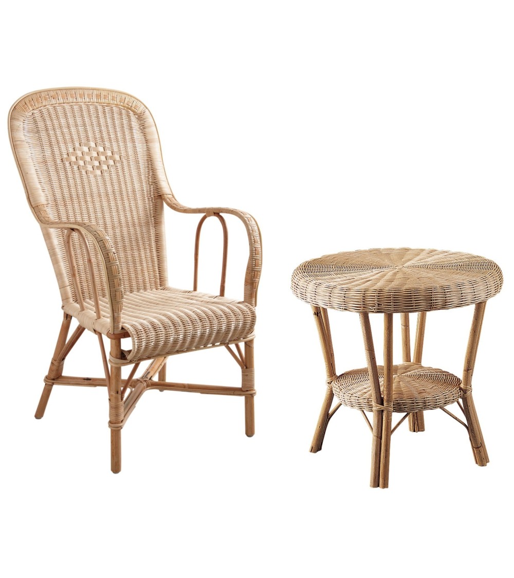 Aspect : Finitions : NaturelleMatériau principal : Manau et moelle de rotinAutres dimensions : Hauteur accoudoirs depuis l'assise : 27 cmHauteur d'assise : 43 cmLargeur entre les accoudoirs : 47 cmÉpaisseur accoudoirs : 2 cmDimensions : Hauteur (en cm) : 102Longueur (en cm) : 54Profondeur (en cm) : 58Dimensions table basse : Hauteur (en cm) : 55Longueur (en cm) : 58Profondeur (en cm) : 58Autres caractéristiques : Compatible extérieur : Oui. Le matériau se patine en cas de longue exposition en extérieur.Composition : 1 fauteuil + 1 tableEntretien : Dépoussiérer régulièrement + effectuer un nettoyage plus en profondeur tous les 3 mois.Livré monté : OuiPoids (en kg) : 8 Petit salon en manau et moelle de rotin