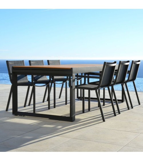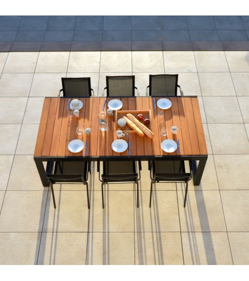 Table dextérieur avec rallonge escamotable Bali. Magnifique table de jardin en aluminium et plateau en bois d'eucalyptus et sa rallonge escamotable. Passez de 220 cm de longueur à 340 cm en un clin d'oeil. Dimensions : L220/340 x l105 x H76cm. Matières : structure en aluminium, plateau en lattes en eucalyptus FSC. Rallonge escamotable. Nos conseils : traitez votre table de jardin en bois avec un produit adapté au bois d'eucalyptus pour la faire durer dans le temps. A noter : les produits de jardin en bois se grisent avec le temps s'ils ne sont pas traités avec des produits adaptés. A monter soi-même. Garantie : 2 ans.