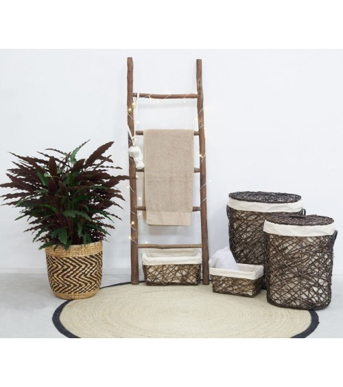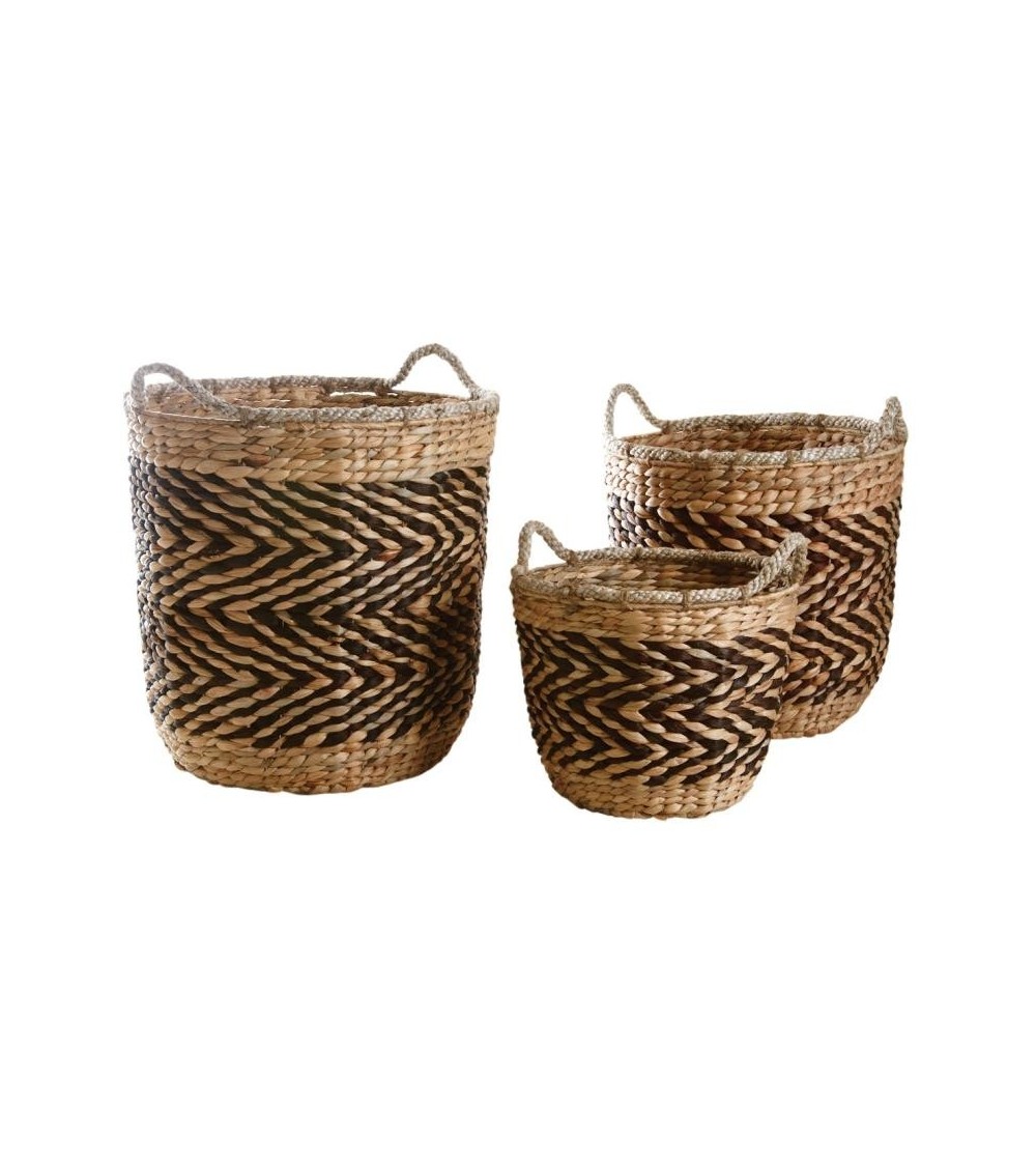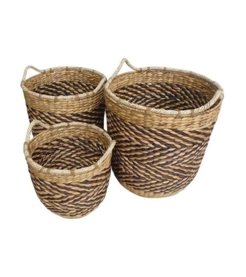Aspect : Matériau principal : JacintheMatériaux secondaires : CordeDimensions : Grand modèle : Diamètre 40 x Hauteur 48 cmMoyen modèle : Diamètre 35 x Hauteur 40 cmPetit modèle : Diamètre 30 x Hauteur 30 cmAutres caractéristiques : Composition : Lot de 3 cache-pots de taille différentePoids (en kg) : 4,50 3 cache-potsEn jacinthe et cordeTaille 1 Diamètre 30 cm , Hauteur 30 cmTaille 2 Diamètre 35 cm , Hauteur 40 cm Taille 3 Diamètre 40 cm , Hauteur 48 cm