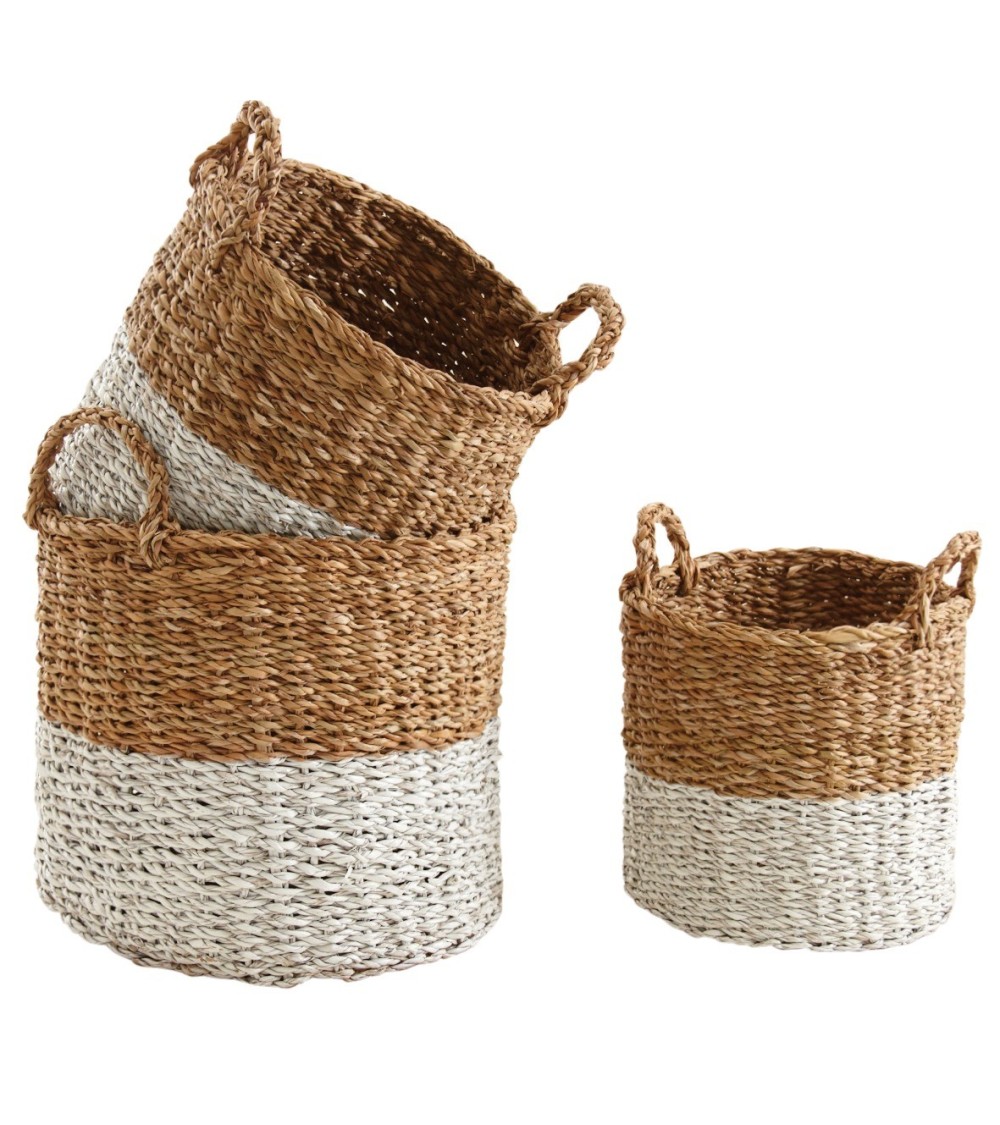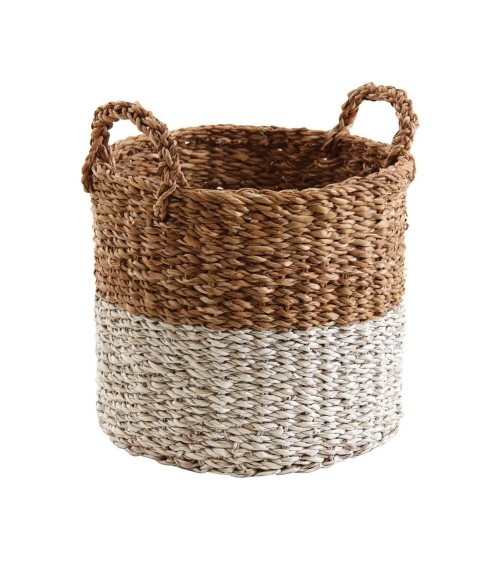 Cache-pots ronds en jonc de mer naturel et teinté blanc (lot de 3)