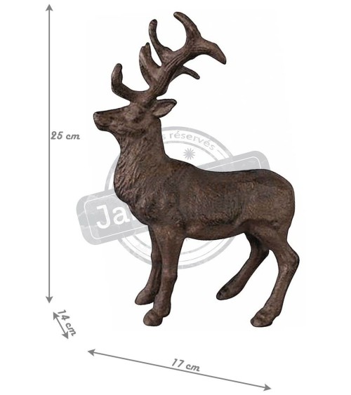 Aspect : Matériau principal : FonteDimensions : Hauteur (en cm) : 25,00Longueur (en cm) : 17,00Profondeur (en cm) : 14,00Autres caractéristiques : Poids (en kg) : 2,00 Cerf en fonte 25 cm
