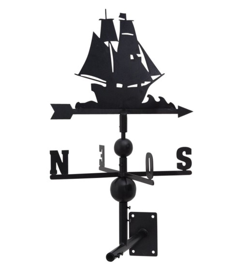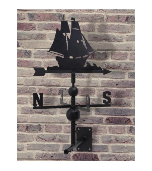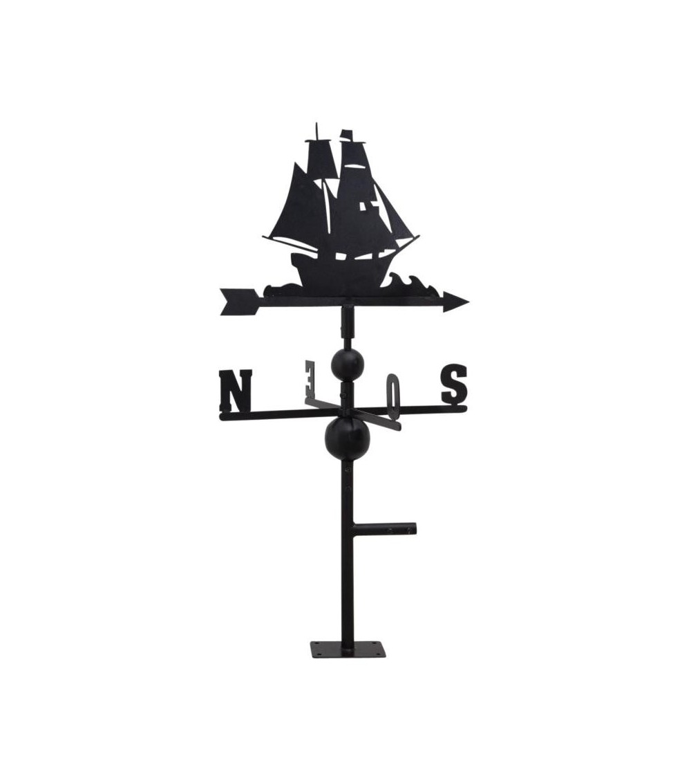 Aspect : Coloris : NoirMatériau principal : Fer forgéModèle : BateauDimensions : Dimensions de la girouette en version pignon : 81cm(Hauteur) x 50cm(Largeur) x 50cm(Profondeur)Dimensions de la girouette en version toit : 97cm(Hauteur) x 47cm(Largeur) x 47cm(Profondeur)Dimensions du Bateau seul : 37.5cm(Hauteur) x 46cm(Longueur) x 2mm(Epaisseur)Autres caractéristiques : Nombre de points cardinaux : 4 points cardinaux en français (E : Est, O : Ouest, S : Sud et N : Nord).Poids (en kg) : 5,76 Conçue en métal et fer forgéInstallation sur toit ou pignon de maisonPoints cardinaux françaisMotif bateau sur la merLongueur motif 46 cm , Epaisseur 0,2 cm , Hauteur 37,5 cm
