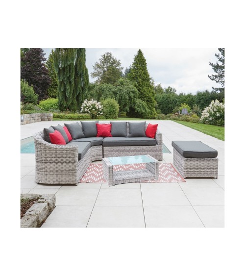 Profitez d'une après-midi entre amis pour partager de bons moments autour du salon de jardin d'angle TAHITI pouvant accueillir jusqu'à 8 personnes.Ultra confortable grâce à ses coussins en polyester anthracite et ses assises spacieuses, il ajoutera une touche de modernité à votre extérieur.Composé d'un module d'angle gauche L.130 x P.80 x H.80 cm, d'un module droit L.130 x P.80 x H.80 cm, d'un module d'angle L.100 x P.100 x H.80 cm, d'une table basse rectangulaire comprenant un plateau en verre trempé de dimension L.120 x P.60 x H.32 cm, et d'un pouf L.108 x P.58 x H.43 cm le salon de jardin Tahiti convient à tous les types de terrasses.Confortable et moderne, vous pouvez personnaliser votre salon de jardin Tahiti grâce à nos nombreux modules de la gamme Phuket et Tahiti.Hors saison, protégez votre salon de jardin grâce à nos housses de protection spécialement conçues pour prolonger la durée de vie de votre mobilier de jardin.