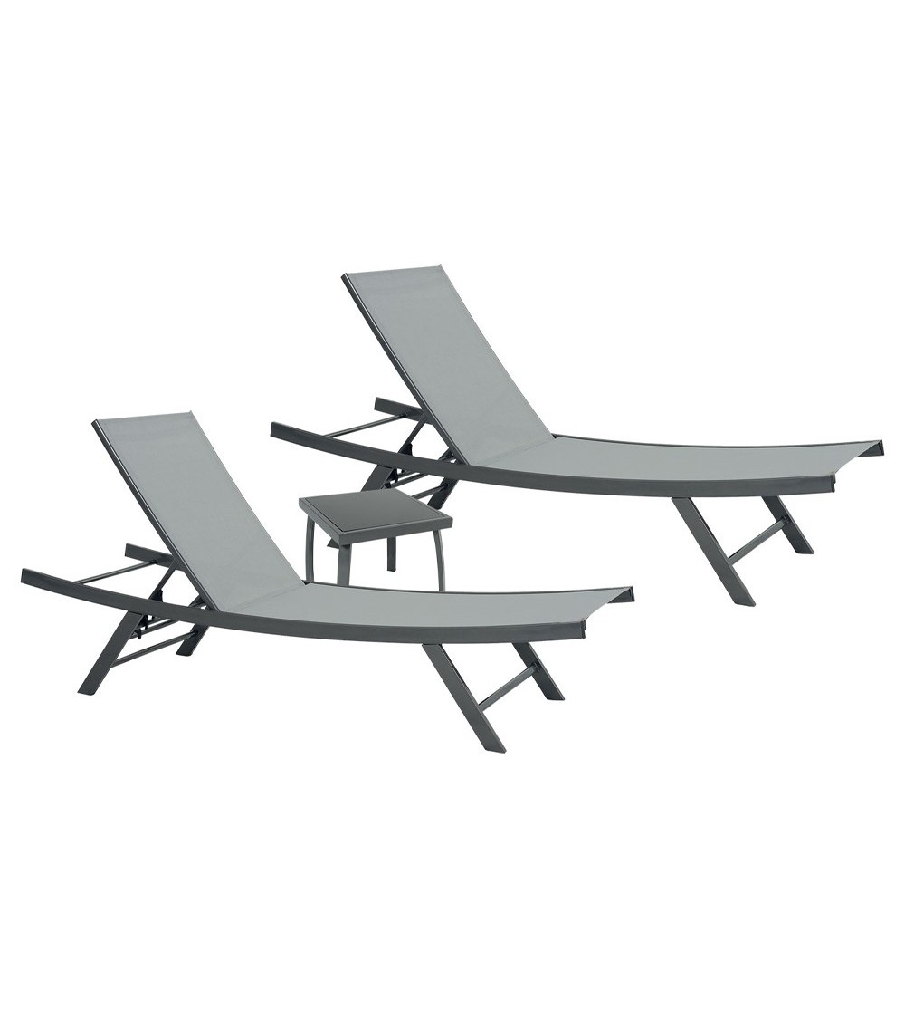 Seul ou à deux notre ensemble de bain de soleil Ario est l'alliance parfaite entre la simplicité et le confort.Reposez-vous calmement aux quatre coins de votre jardin grâce à ces bains de soleil léger.Esthétique et facile à déplacer vous pouvez profiter du soleil en toute saison.D'une dimension de 190x58x40/99cm, ils sont accompagnés d'une table basse 44x44x40cm pour vous permettre de siroter une boisson tranquillement ou de déposer votre livre sans encombrer votre transat !Disponibles en plusieurs coloris, l'ensemble de bain de soleil Ario apportera une touche de gaieté à votre extérieur.Pour profitez de votre moment de détente sans craindre les coups de soleil, pensez aux parasols de la marque Ozalide.