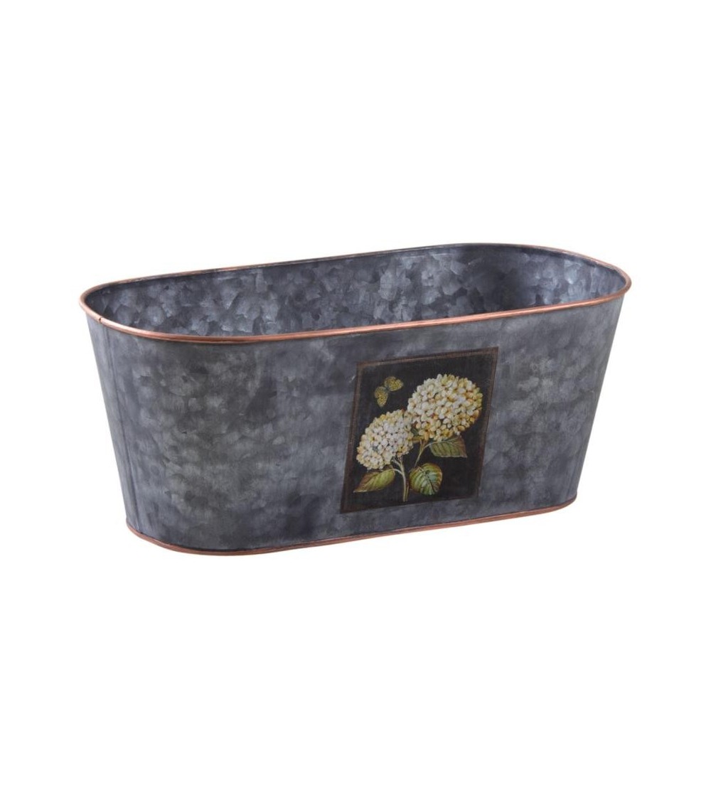 Aspect : Coloris : GrisFinitions : PatinéMatériau principal : MétalDimensions : Hauteur (en cm) : 13,00Longueur (en cm) : 32,00Profondeur (en cm) : 16,00Autres caractéristiques : Poids (en kg) : 0,31 Corbeille ovale en métal patiné gris Hortensia