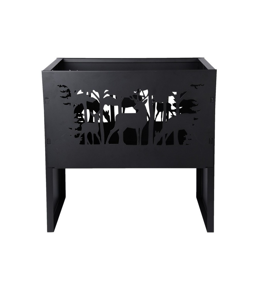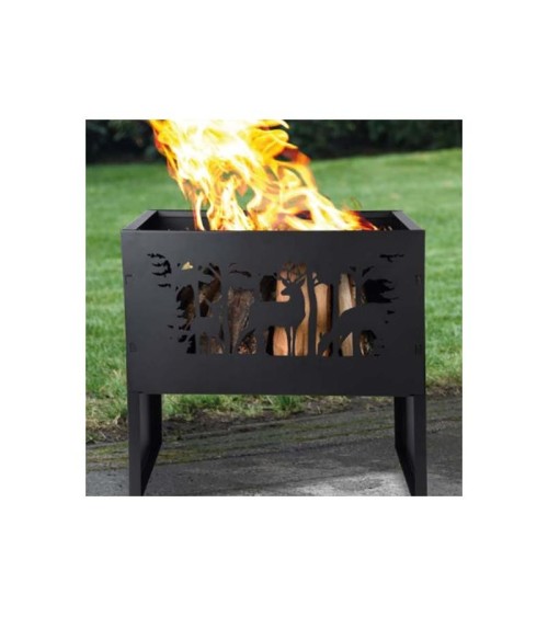 Aspect : Matériau principal : Acier douxDimensions : Hauteur (en cm) : 50,50Longueur (en cm) : 50,10Profondeur (en cm) : 30,20Autres caractéristiques : Informations complémentaires : Emballé dans une caisse en bois (qui peut servir de bois de chauffage) , Facile à assembler - aucun outil requis , Muni de deux poignéesPoids (en kg) : 4,59 Brasero rectangulaire découpe laser Cerfs