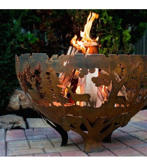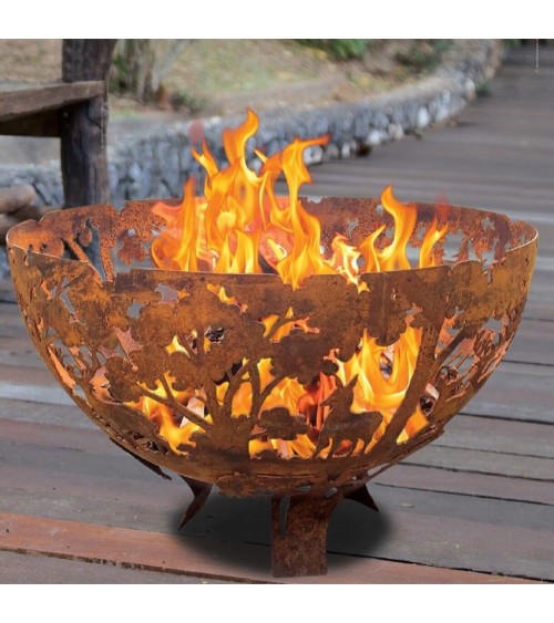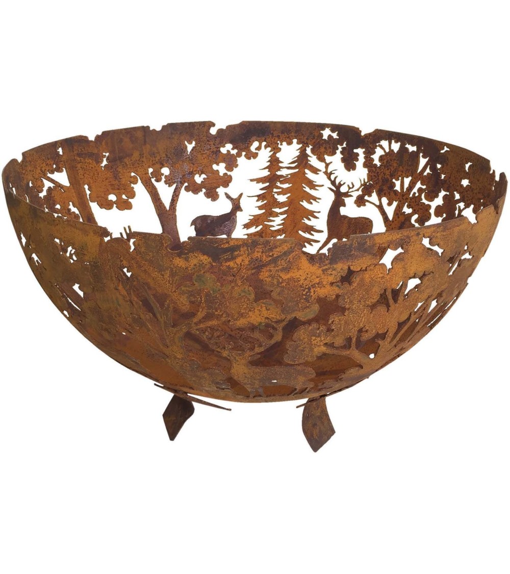Aspect : Matériau principal : Métal rouilléDimensions : Hauteur (en cm) : 37,00Longueur (en cm) : 58,00Profondeur (en cm) : 58,00Autres caractéristiques : Poids (en kg) : 5,00 Brasero demi-rond en métal