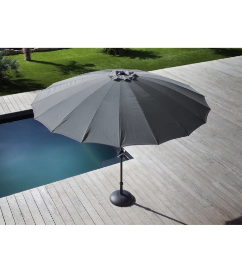 Aspect : Coloris : Cendre (toile) Royal grey (mât) Matériau principal : Toile polyester 180 gr déperlanteMatériaux secondaires : Fibre de verre (baleines) Aluminium 38 mm (mât) Dimensions : Diamètre (en cm) : 300Hauteur (en cm) : 260,00Autres caractéristiques : Informations complémentaires : Ouverture par manivelle Inclinable Sous housse cristal avec zip 18 baleines Pied de parasol non fourni Livré en kit : OuiPoids (en kg) : 8 Toile polyester 180 gr/m², déperlantMât aluminium 38 mm + 18 baleinesOuverture facile par manivelle + inclinableVendu sans pied , Housse de rangement fournieDiamètre 3 m , Hauteur 2,6 m