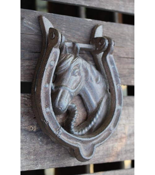Aspect : Coloris : RouilleMatériau principal : FonteDimensions : Hauteur (en cm) : 16,00Longueur (en cm) : 11,70Profondeur (en cm) : 2,90Autres caractéristiques : Collection : Best for bootsPoids (en kg) : 0,60 La fonte métallique imbibée de rouille sur ce heurtoir de porte fer à cheval Best for Boots affiche la chance et l'amour du cheval...