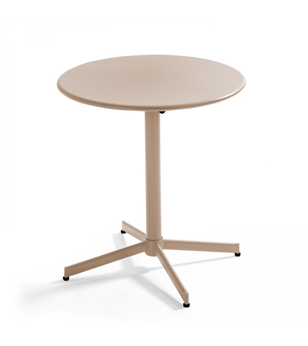 Avec son look bistrot et son design aussi robuste que pratique, la table de jardin avec plateau inclinable est idéale pour les pauses café sur la terrasse ou le balcon. Toute en acier et protégée anti-rouille, elle ne craint pas les intempéries et ne demande quasiment pas d'entretien, même utilisée fréquemment en extérieur. Son style contemporain s'accommodera à toutes les ambiances, et la table de jardin bistrot se range facilement une fois son plateau rabattu. Celui-ci est parfaitement sécurisé grâce à une poignée de blocage située en-dessous. Le piétement est équipé de patins ajustables : votre table peut ainsi être installée sur toute surface tout en restant stable. L'assemblage est à effectuer soi-même, la notice et la visserie sont incluses. Description de la table de jardin avec plateau rabattable : Table de jardin Plateau rond et rabattable Style contemporain Série Palavas Caractéristiques de la table de jardin avec plateau rabattable : 100% acier thermolaqué Poignée pour incliner et bloquer le plateau Patins anti-dérapants et ajustables Protection anti-rouille à la peinture époxy À monter soi-même Notice et visserie incluses Dimensions de la table de jardin avec plateau rabattable : Diamètre : 70 cm Hauteur : 72 cm Colis : 1 colis de 10 kgAfin de prolonger sa durée de vie, hivernez si possible votre mobilier en acier en intérieur (une cave, un garage, un abri de jardin...). Idéalement dans un endroit sec et ventilé.