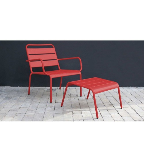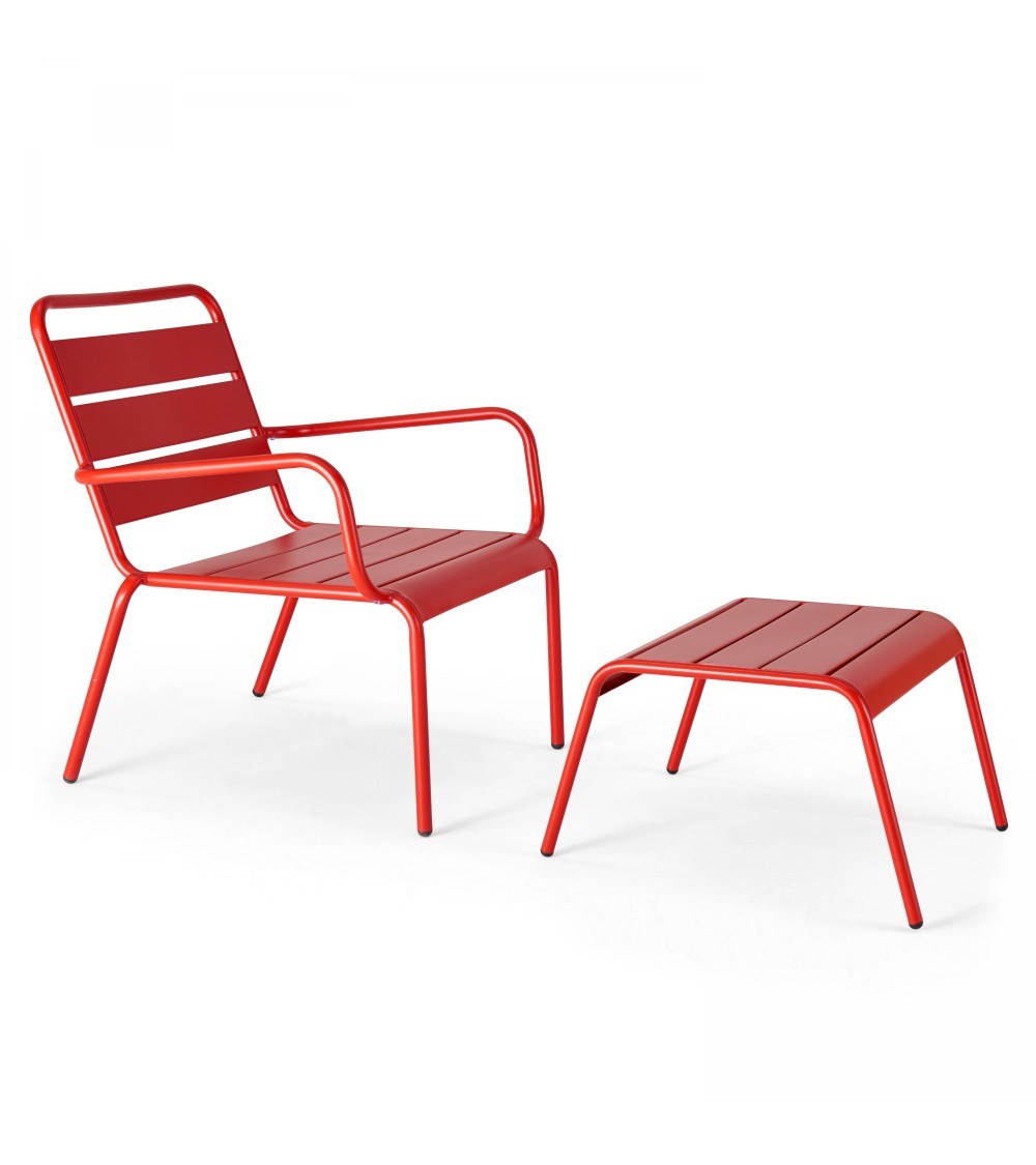 Le fauteuil de jardin bas avec repose pieds en métal Palavas est le compagnon idéal de vos moments de détente en plein air. Conçus pour une utilisation outdoor, le fauteuil et son repose pieds sont parfaits pour vous relaxer dans votre jardin ou sur la terrasse et très faciles à entretenir. Avec son assise profonde et son dossier incliné, le fauteuil bas est ultra confortable, le repose pieds peut même servir de table d'appoint.Caractéristiques du fauteuil bas Palavas :Fauteuil bas avec accoudoirs 100% acier thermolaqué Protection anti-UV et anti-rouille à la peinture époxy Assise et dossier ajourés Patins anti-dérapants Aucun montage requisCaractéristiques des fauteuils de jardin Palavas :Repose pieds rectangulaire 100% acier thermolaqué Plateau ajouré Protection anti-UV et anti-rouille à la peinture époxy Patins anti-dérapants Aucun montage requisDimensions du fauteuil bas Palavas :Longueur : 60 cm Profondeur : 64 cm Hauteur : 72 cmDimensions des fauteuils de jardin Palavas :Longueur : 40 cm Profondeur : 44 cm Hauteur : 30 cmColis :1 carton Poids du fauteuil : 6 kg Poids du repose pieds : 3 kg Poids total : 9 kg