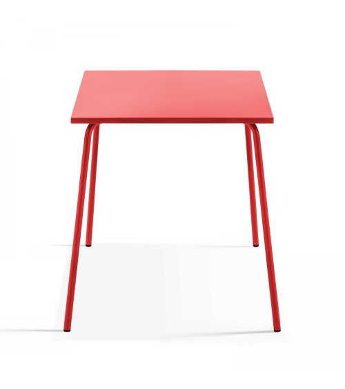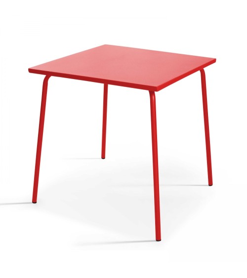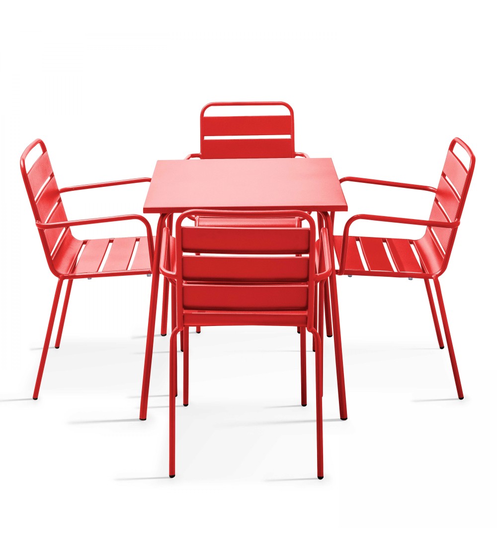 Ensemble table de jardin carrée et 4 fauteuils acier rouge