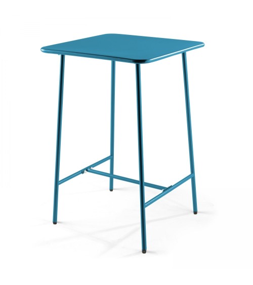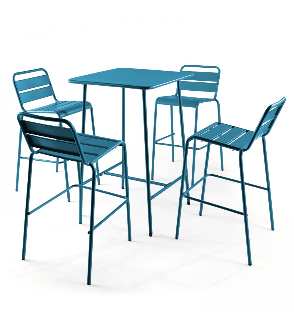 Ensemble table de bar et 4 chaises hautes en métal bleu pacific