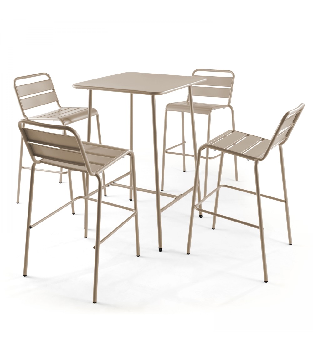 Ensemble table de bar et 4 chaises hautes en métal taupe