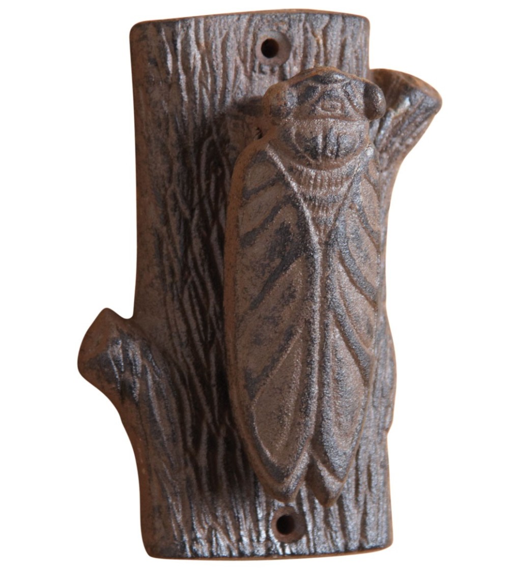 Aspect : Matériau principal : FonteDimensions : Hauteur (en cm) : 15Longueur (en cm) : 11Profondeur (en cm) : 7Autres caractéristiques : Poids (en kg) : 0,88 Heurtoir de porteEn fonteFinition antiqueDéco CigaleLongueur 11 cm , Largeur 7 cm , Hauteur 15 cm