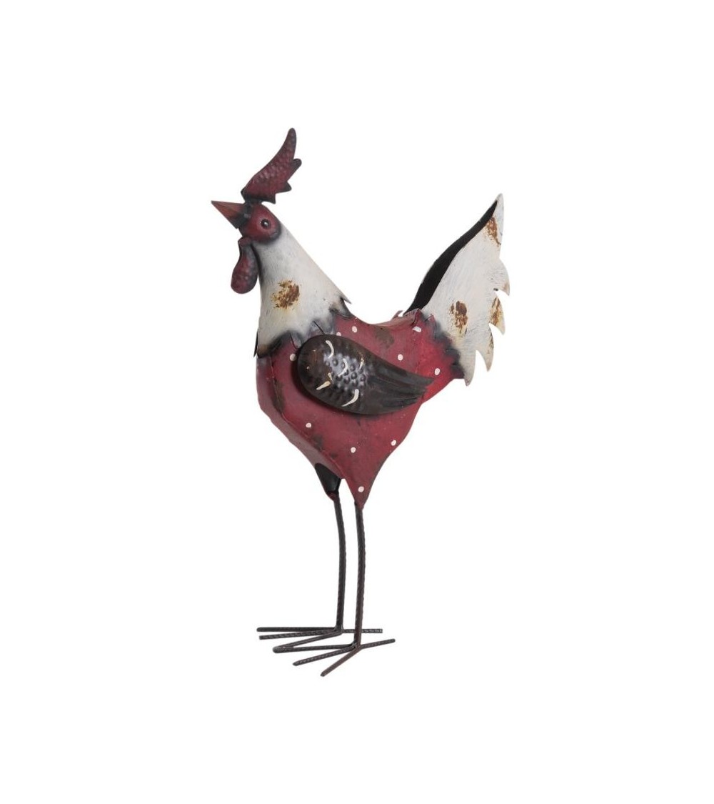 Aspect : Finitions : Laquée et vieillieMatériau principal : MétalDimensions : Hauteur (en cm) : 50,00Longueur (en cm) : 28,00Profondeur (en cm) : 14,00Autres caractéristiques : Livré monté : OuiPoids (en kg) : 0,83 Coq en métal laqué rouge et bleu