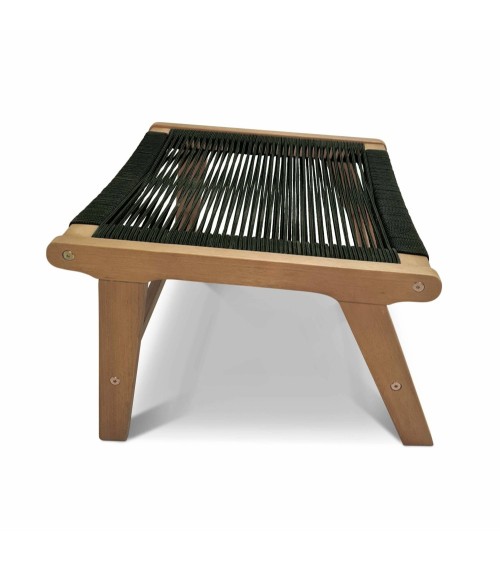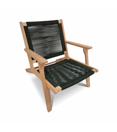 Fauteuil relax en eucalyptus et corde noir avec repose pieds