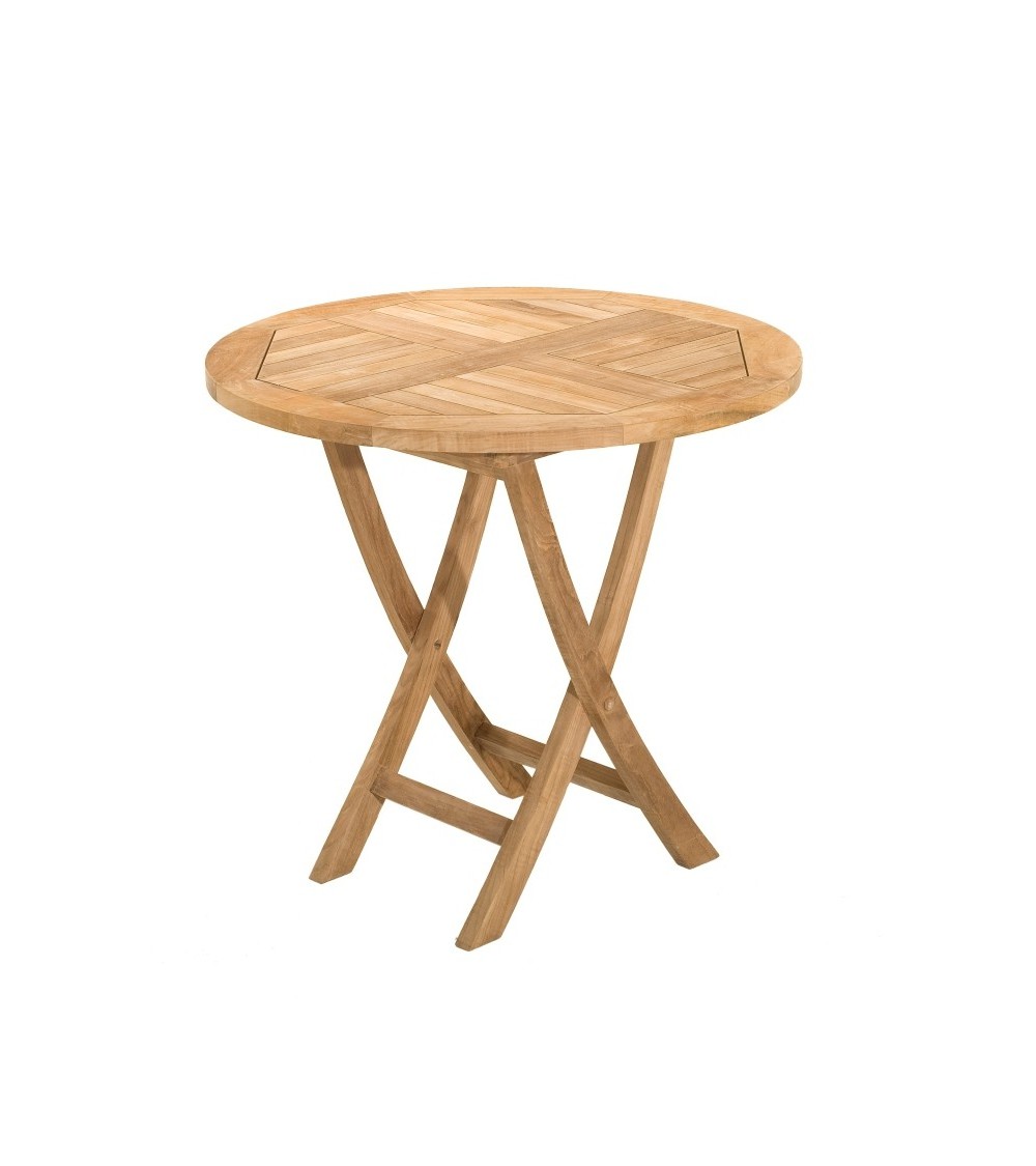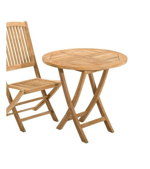 Table de jardin ronde pliante. Dimensions : 80 x 80 cm. Article en teck. Cette table passe partout vous offrira convivialité en petit comité. Cette table en teck peut accueillir jusqu'à 3 personnes. Très pratique car facilement transportable, vous pouvez la disposer dans votre jardin, balcon, terrasse, ou dans votre véranda. Le teck est un bois précieux et imputrescible très utilisé pour la fabrication de meubles de jardin car il est extrêmement résistant aux agressions climatiques les plus rudes et constantes (humidité). Nos meubles de jardin sont en teck massif de première qualité, ce qui exclut principalement les défauts et offre une finition qualitative. Les plantations Le bois utilisé dans la fabrication de nos meubles de jardin provient uniquement de forêts de replantation provenant de l'île de Java. Ces forêts sont gérées par l'organisme d'état Perum Perhutani, qui détermine une saisonnalité et un quota de coupe afin d'assurer la durabilité de la ressource. L'entretien Les meubles en teck peuvent rester à l'extérieur sans aucun traitement particulier. Après quelques mois voire quelques années, le bois prendra une teinte grisée. Pour conserver la couleur initiale de votre meuble ou pour retirer une tache, poncez légèrement ce dernier avec un papier de verre fin. Vous pouvez également appliquer une huile de teck en début de saison, il sera ainsi protégé et de couleur miel. Il est fortement conseillé d'abriter ce mobilier et de le protéger du gel pendant la période hivernale afin qu'il ne s'abîme pas.