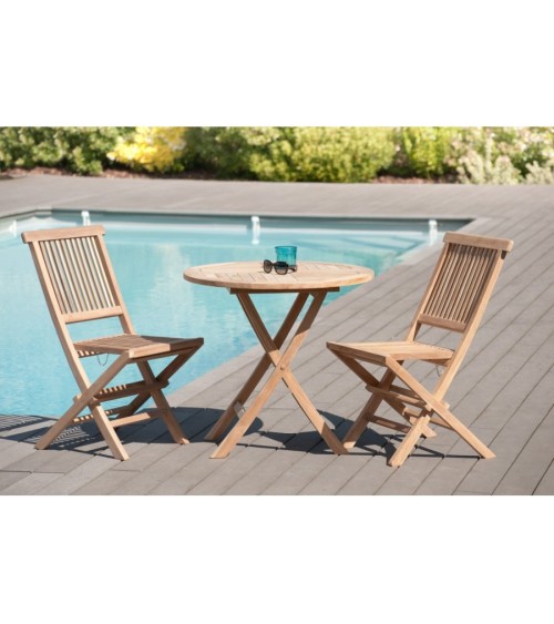 Table de jardin 2 personnes, pliante d. 80 x 80 cm en teck