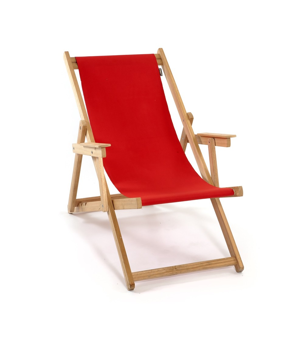 Produit à usages professionnels et particuliers. Chilienne de jardin pliante, avec accoudoirs, en toile 100% coton rouge et chassis 100% bois d'eucalyptus PEFC. Dossier réglable 4 positions. Toile amovible. Fabrication artisanale. Recyclable.DIMENSIONSDépliée : L 96 x l 61 x H 102 cmPliée : L 61 x l 6 x H 132 cmHauteur sol-assise : 46 cmHauteur sol-accoudoirs : 60 cmChoisissez les chiliennes professionnelles LONA pour aménager votre salle de restaurant ou votre terrasse.