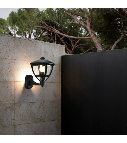 Coup de cur pour la collection de luminaires d'extérieur HARRY. Cette applique murale conçue en aluminium noir arbore un charme moderne et même contemporain qui se mariera parfaitement avec votre décoration extérieure. Sa forme de lanterne revisitée et son ampoule apparente grâce à ses parois en polycarbonate transparent font également de cette applique murale un véritable atout charme pour votre aménagement outdoor. Idéale sur votre terrasse pour illuminer vos moments de partage et accompagner votre quotidien, cette applique murale montante HARRY trouvera aussi sans aucun doute sa place proche de votre porte d'entrée ou de votre garage pour un éclairage plus fonctionnel et accueillant. Notre astuce déco : optez pour une belle ampoule avec filaments et donnez une touche vintage à votre applique murale extérieur HARRY. Luminaire équipé d'une douille E27 compatible avec une ampoule d'une puissance maximale de 40W (ampoule non incluse). Dimensions : hauteur 23.5cm x diamètre 17.5cm x profondeur 20.5cm. Existe également dans la même collection HARRY en version potelet d'extérieur ou encore borne d'extérieur. Les plus du produit : Matériau résistant - Eclairage homogène - Ampoule à personnaliser Caractéristiques : - Douille : E27 - Puissance : 40W - IP : 44 - Matière : Aluminium