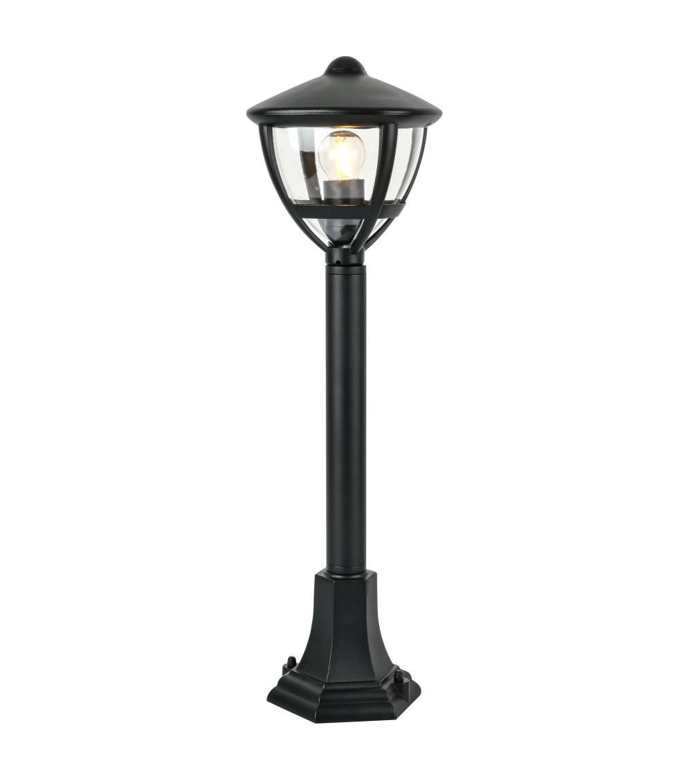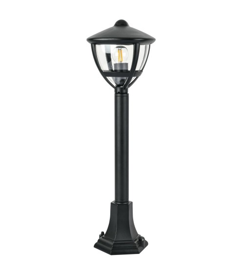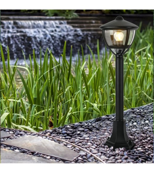 Coup de cur pour la collection de luminaires d'extérieur HARRY. Cette borne conçue en aluminium noir arbore un charme moderne et même contemporain qui se mariera parfaitement avec votre décoration extérieure. Sa forme de lanterne revisitée et son ampoule apparente grâce à ses parois en polycarbonate transparent font également de cette borne un véritable atout charme pour votre aménagement outdoor. Idéale autour de votre terrasse pour illuminer vos moments de partage et accompagner votre quotidien, cette borne HARRY trouvera aussi sans aucun doute sa place proche de votre porte d'entrée ou de votre garage pour un éclairage plus fonctionnel et accueillant. Notre astuce déco : optez pour une belle ampoule avec filaments et donnez une touche vintage à votre borne extérieur HARRY. Luminaire équipé d'une douille E27 compatible avec une ampoule d'une puissance maximale de 60W (ampoule non incluse). Dimensions : hauteur 60cm x diamètre 17.5cm. Existe également dans la même collection HARRY en version potelet d'extérieur ou encore applique murale d'extérieur. Les plus du produit : Matériau résistant - Eclairage homogène - Ampoule à personnaliser Caractéristiques : - Douille : E27 - Puissance : 40W - IP : 44 - Matière : Aluminium