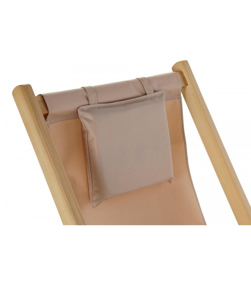 Très belle chaise de jardin pliante en bois mdf et polyester marron avec coussin de tête. Dimensions: 57.5x113x77cmCouleur: Bois et marronMatière: mdf et polyester