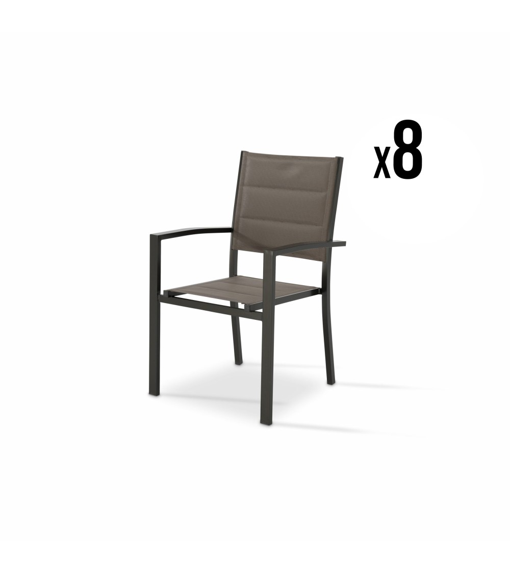 Lot de 8 chaises empilables aluminium et textilène tapissé marron