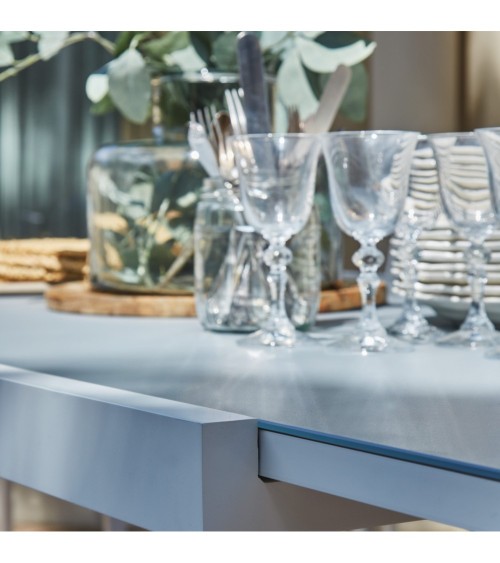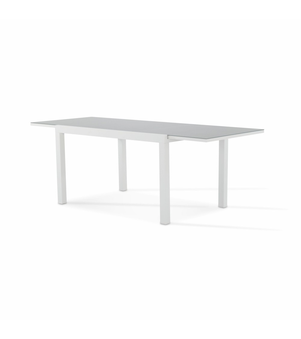 Table d'extérieur extensible en aluminium 215/135X90cm en aluminium blanc et verre trempé gris. Conçue pour tirer le meilleur parti de votre terrasse ou porche, grâce à son extension qui vous permet de rallonger la table de 80 cm si nécessaire. Le système d'extension est très facile et pratique à utiliser. Cette table est idéale pour profiter des repas, des barbecues et des réunions en plein air avec les amis et la famille. Vous pouvez également le combiner avec les autres éléments de la famille de produits Tokyo.