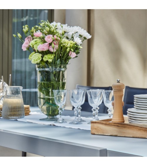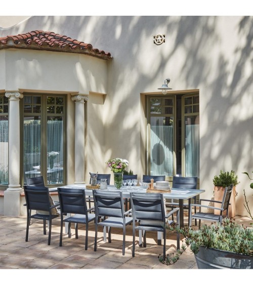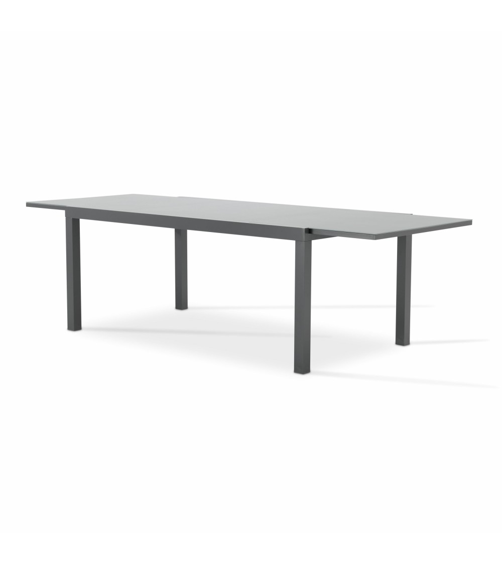 Table d'extérieur extensible en aluminium 260/180X100cm en aluminium gris anthracite et verre trempé gris. Conçue pour tirer le meilleur parti de votre terrasse ou porche, grâce à son extension qui vous permet de rallonger la table de 80 cm si nécessaire. Le système d'extension est très facile et pratique à utiliser. Cette table est idéale pour profiter des repas, des barbecues et des réunions en plein air avec les amis et la famille. Vous pouvez également le combiner avec les autres éléments de la famille de produits Tokyo.