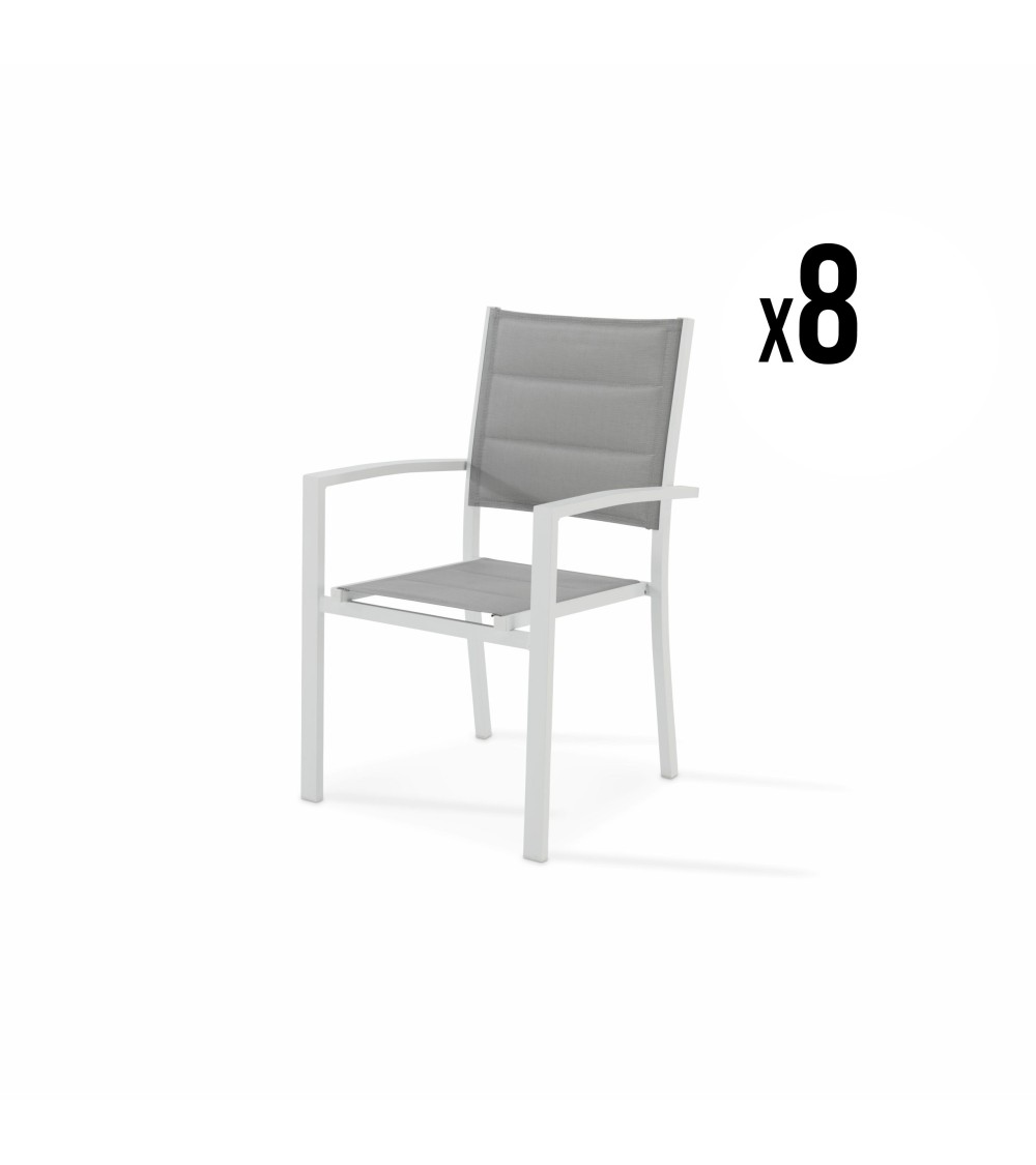 Lot de 8 chaises empilables en aluminium blanc et textilène gris