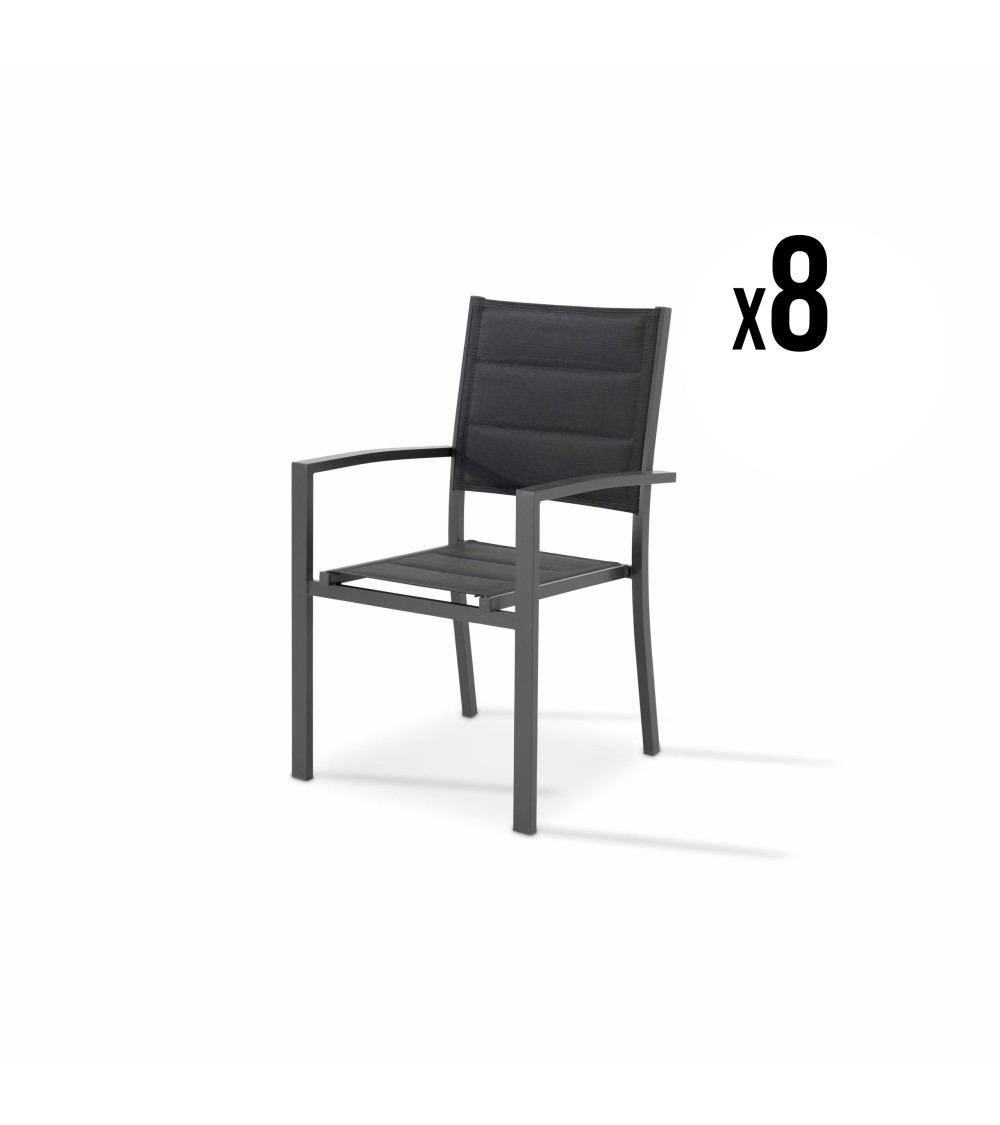 Lot de 8 chaises empilables en aluminium et textilène gris anthracite