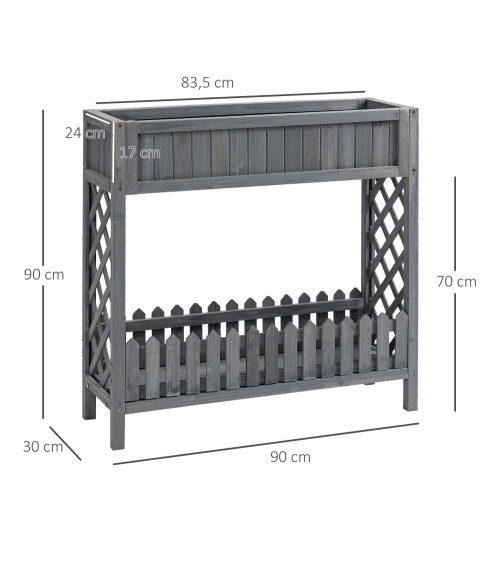 Jardinière sur pied avec étagère barrière - bois sapin gris