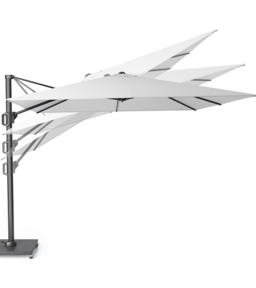 Parasol rectangulaire déporté de 3x2 m. La toile du parasol déporté VOYAGER T1 est plus petite ce qui le rend plus adapté aux petits espaces. Simple inclinaison, rotatif à 360 degrés grâce à sa pédale. Toile déperlante et dense en polyester de 220gr/m², hydrofuge et antisalissures, UPF 35. Disponible en plusieurs coloris. Ouverture facile par manivelle. Cheminée d'aération. Armature du parasol en aluminium : 5 x 6.7 x 1.4 x 240 cm. 8 baleines en aluminium. Hauteur : fermé 2m41, ouvert 2m38 (sans pied). Important : pied et housse vendus séparément. Nous conseillons un pied de 90 kilos minimum. Pour protéger et préserver votre parasol nous vous conseillons les housses de protection Aerocover vendues à part.