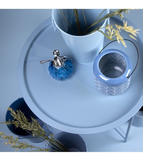 Aspect : Coloris : BleuMatériau principal : AcierDimensions : Diamètre (en cm) : 46Hauteur (en cm) : 52,20Autres caractéristiques : Informations complémentaires : PliablePoids (en kg) : 1,84 Table d'appoint en acier nuances de bleu
