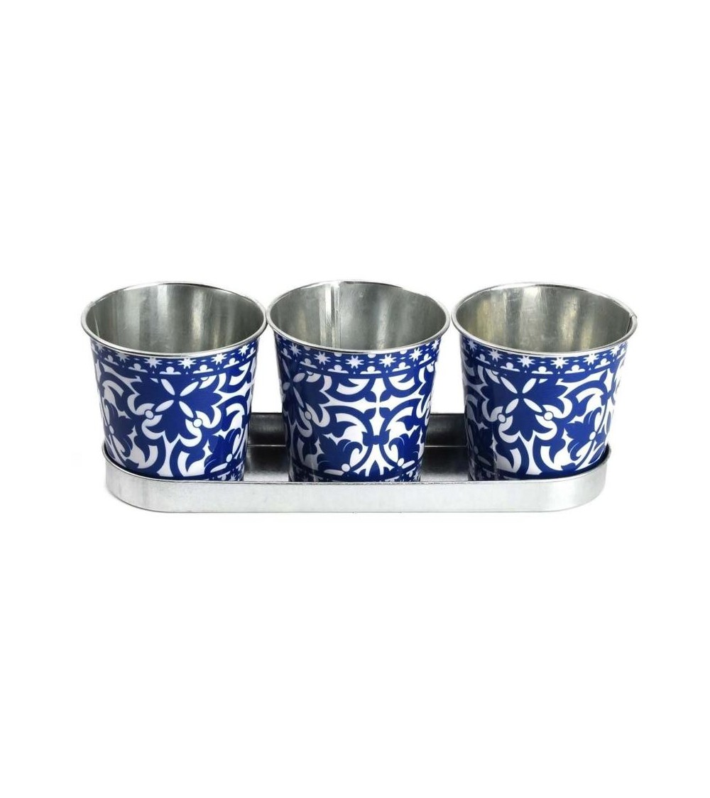 Aspect : Coloris : Bleu Blanc Matériau principal : ZincDimensions : Hauteur (en cm) : 10Longueur (en cm) : 29Profondeur (en cm) : 10Autres caractéristiques : Poids (en kg) : 0,25 Jardinière en zinc 3 pots carreaux de ciment