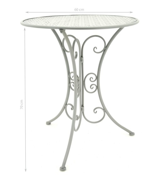 Aspect : Matériau principal : MétalDimensions : Diamètre (en cm) : 60,00Hauteur (en cm) : 70,00Autres caractéristiques : Informations complémentaires : Traitement Waterproof. Produit démontable facilement pour un rangement gain de place.Livré en kit : OuiPoids (en kg) : 5 Table rondeMétal laqué Traitement waterproofDiamètre 60 cm , Hauteur 70 cm