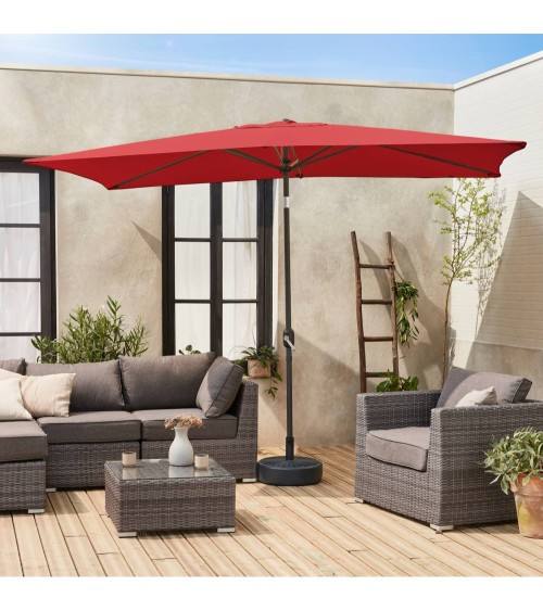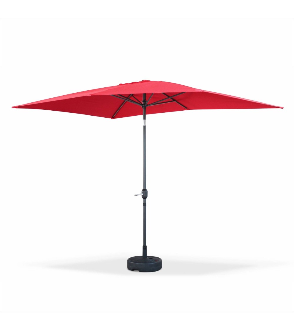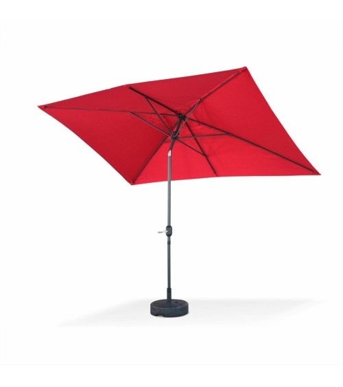 Parasol droit rectangulaire rouge aluminium avec mât central 2m sur 3m