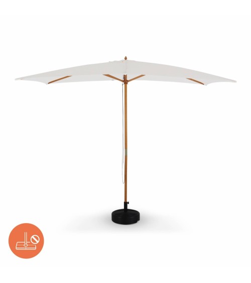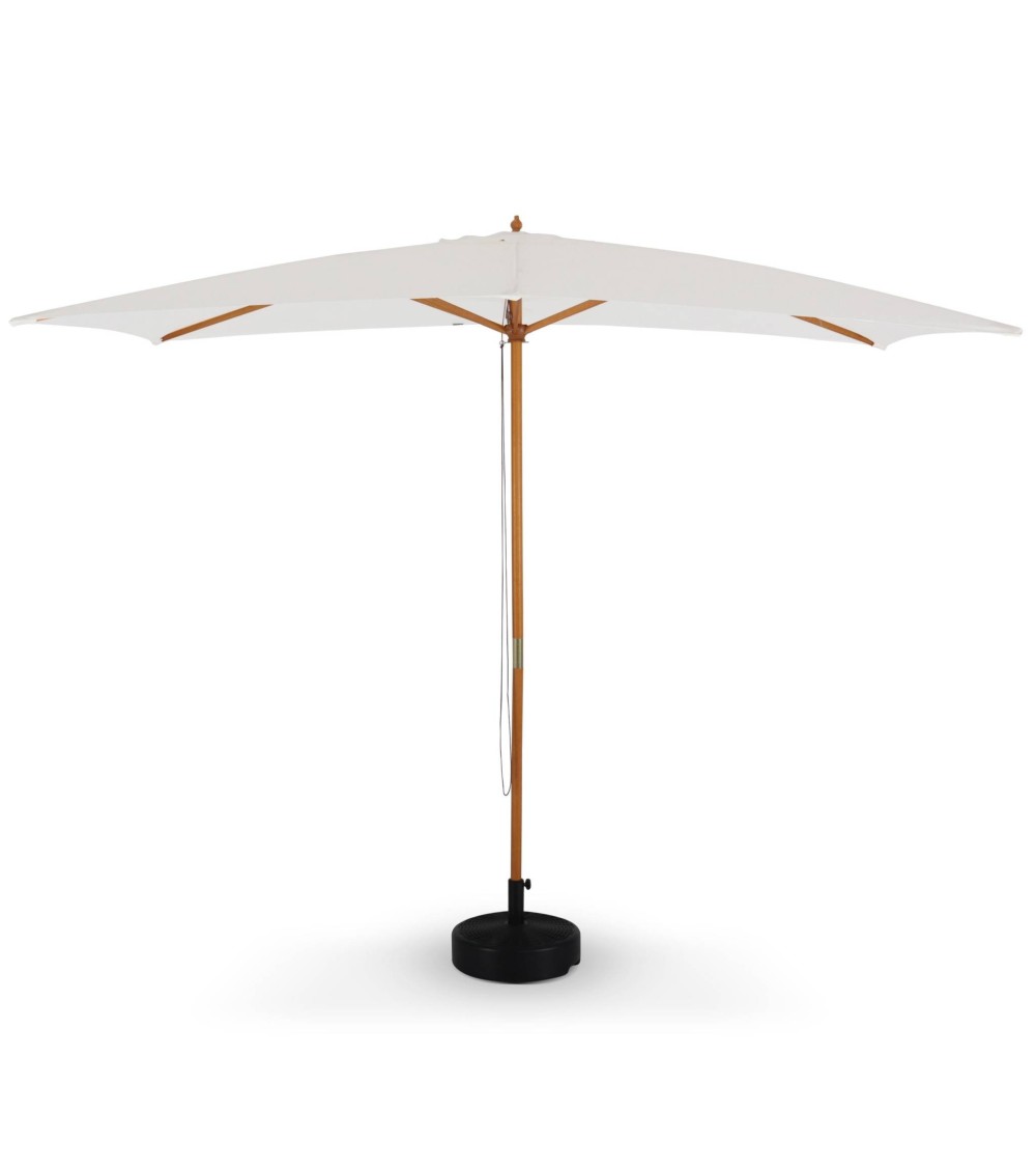 Parasol droit rectangulaire écru avec mât central en bois 2m sur 3m